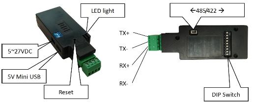 RS-422/485 serial converter, Link mode, Support RS-485 Modbus RTU